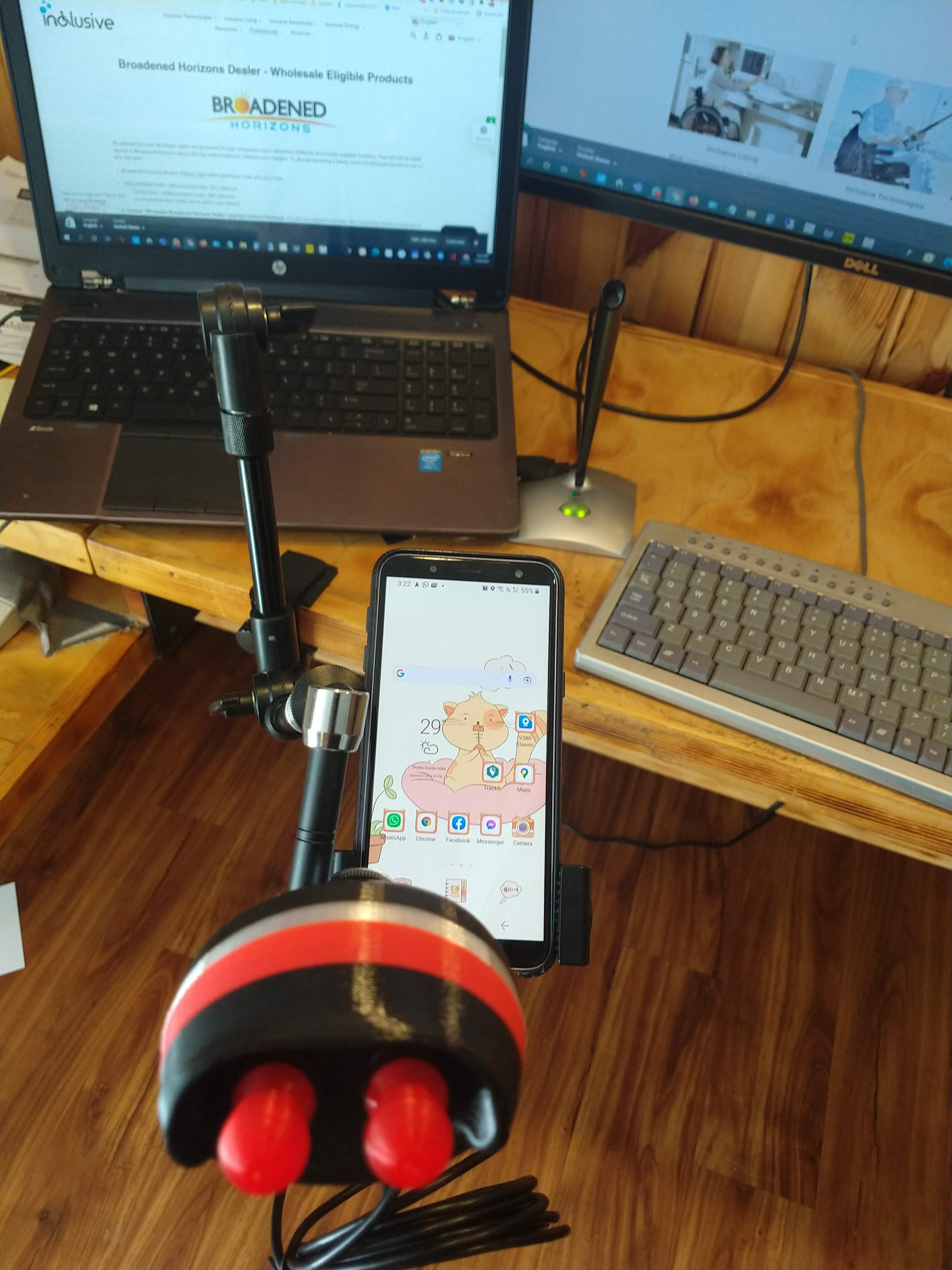 - Super-adjustable desktop mount with 4 degrees of freedom can mouse controller from 4"-18" above desk surface and up to 12" in front of it!