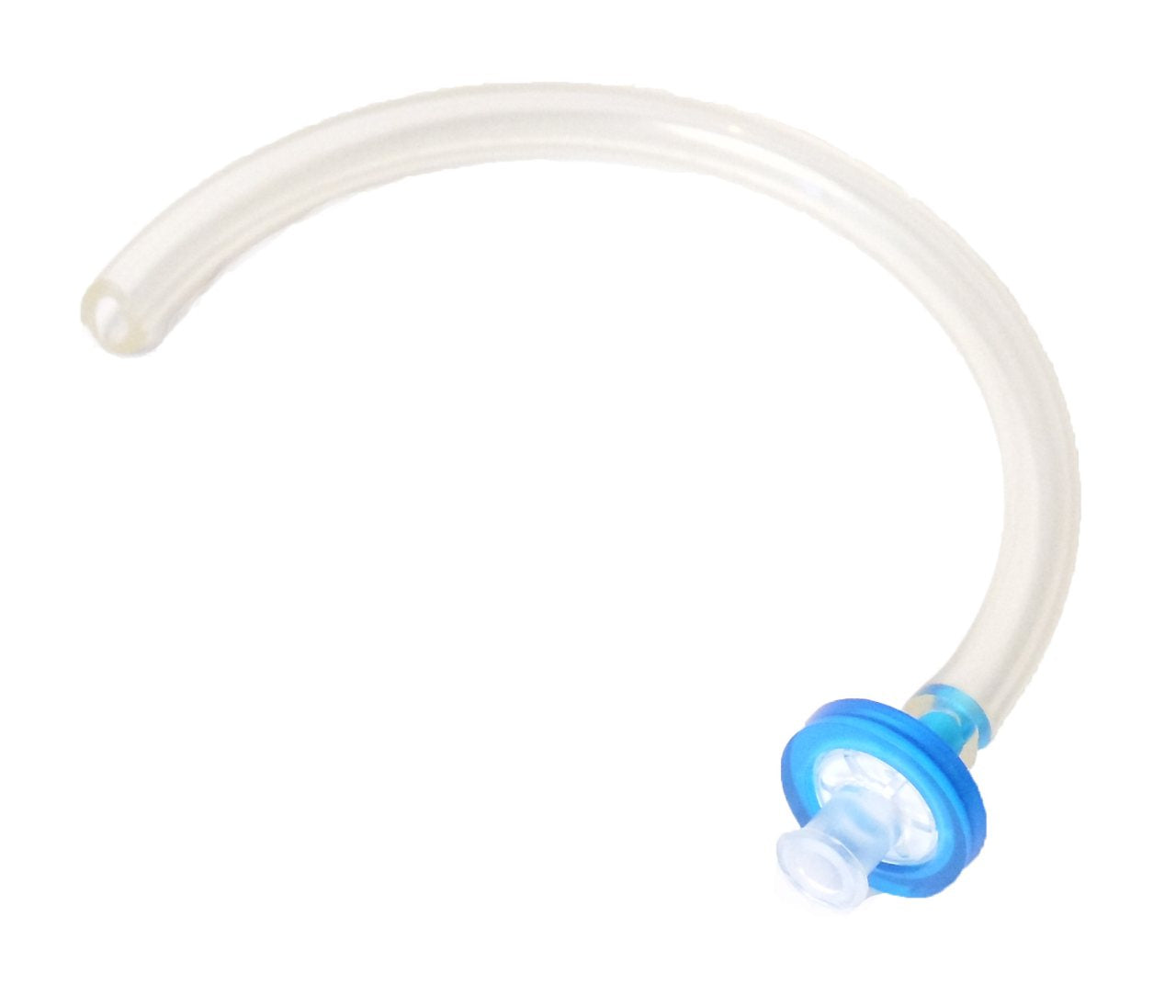 - 1 Mouthpiece Receiver for ⅛” Tubing - Insert barb into the end of the tubing. Blue mouthpiece disc inserts into the receiver with a ½ twist