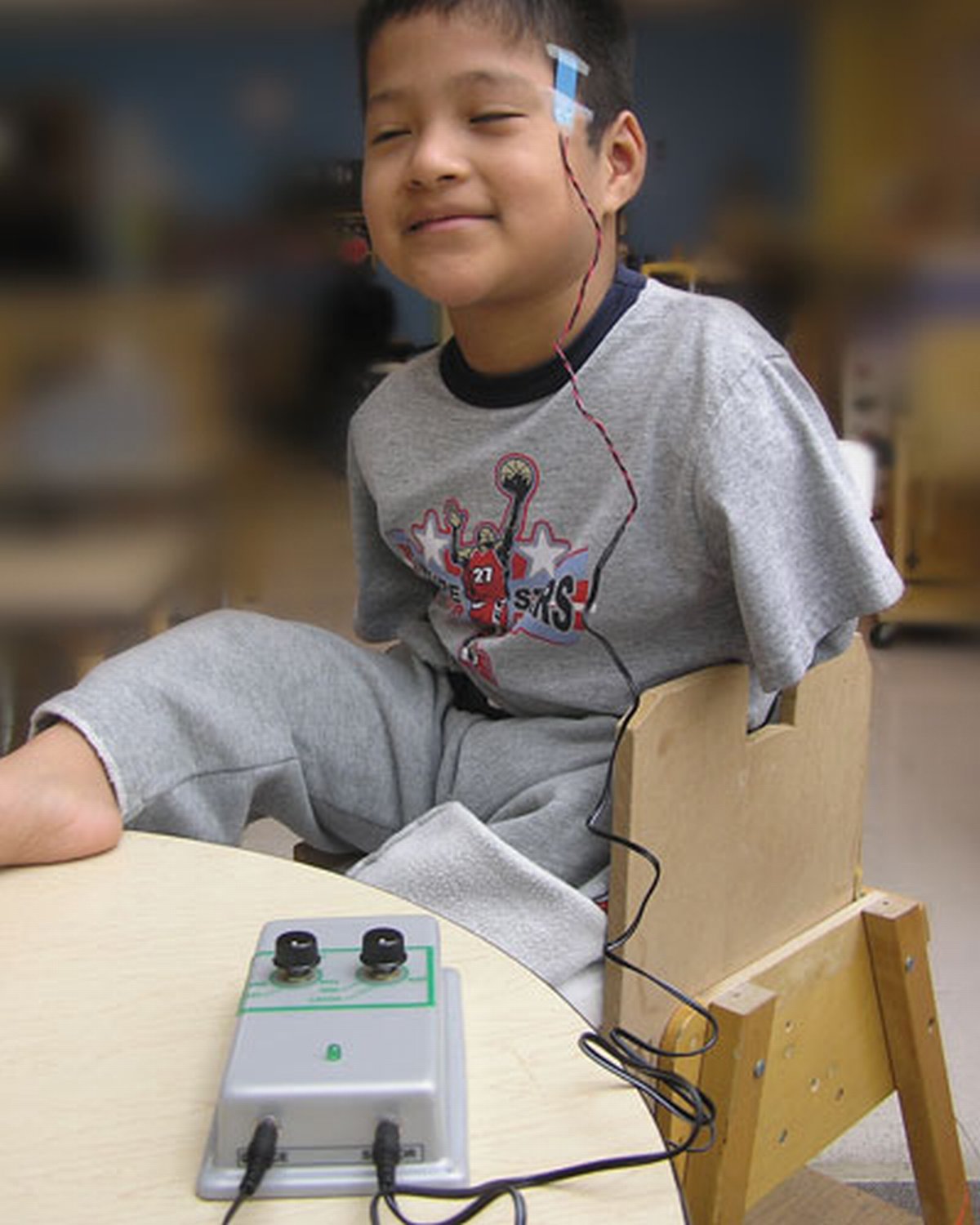 Use any two slight body movements for control. Position the sensors wherever the user has the most consistent control without fatigue. Also referred to as a Twitch Switch or Muscle Sensor Switch.