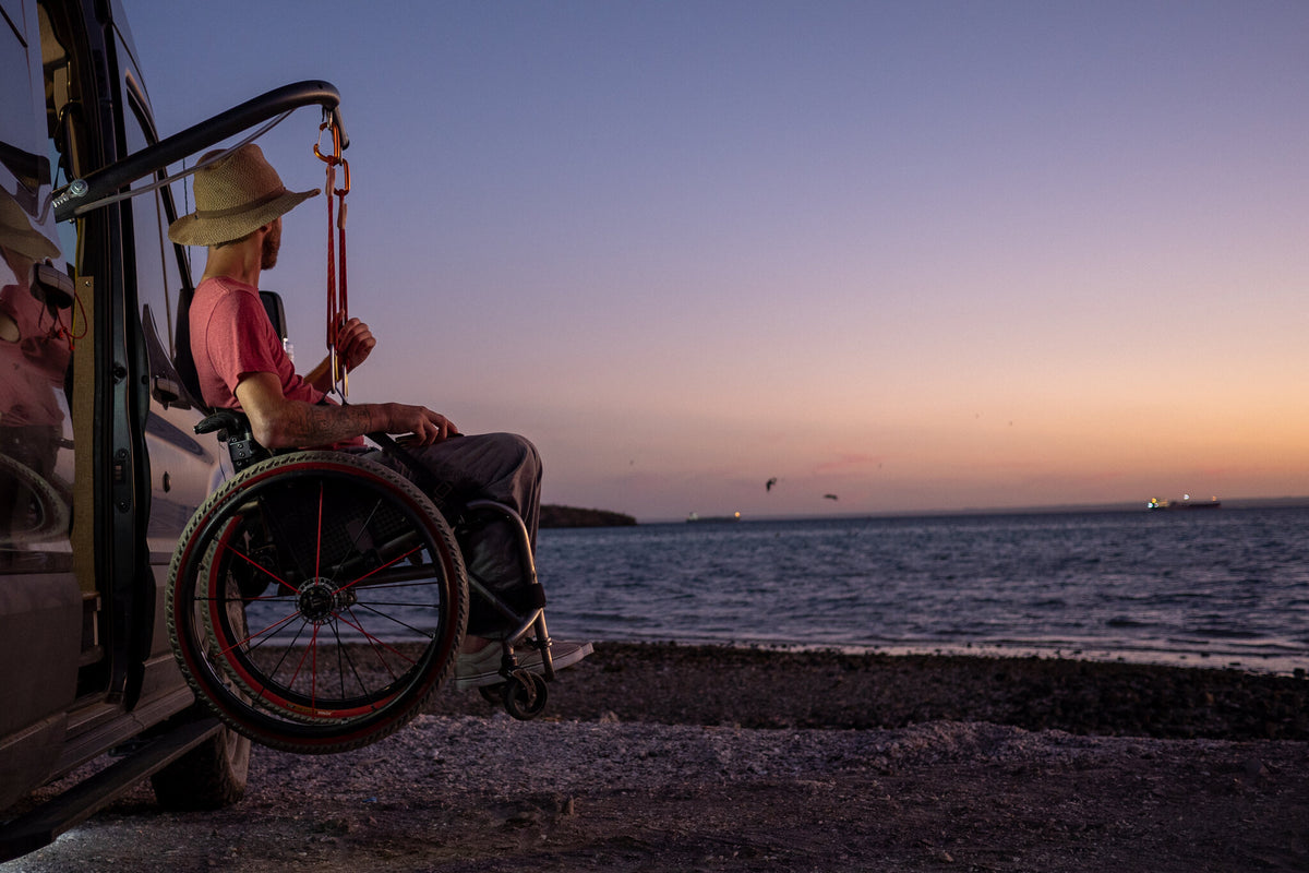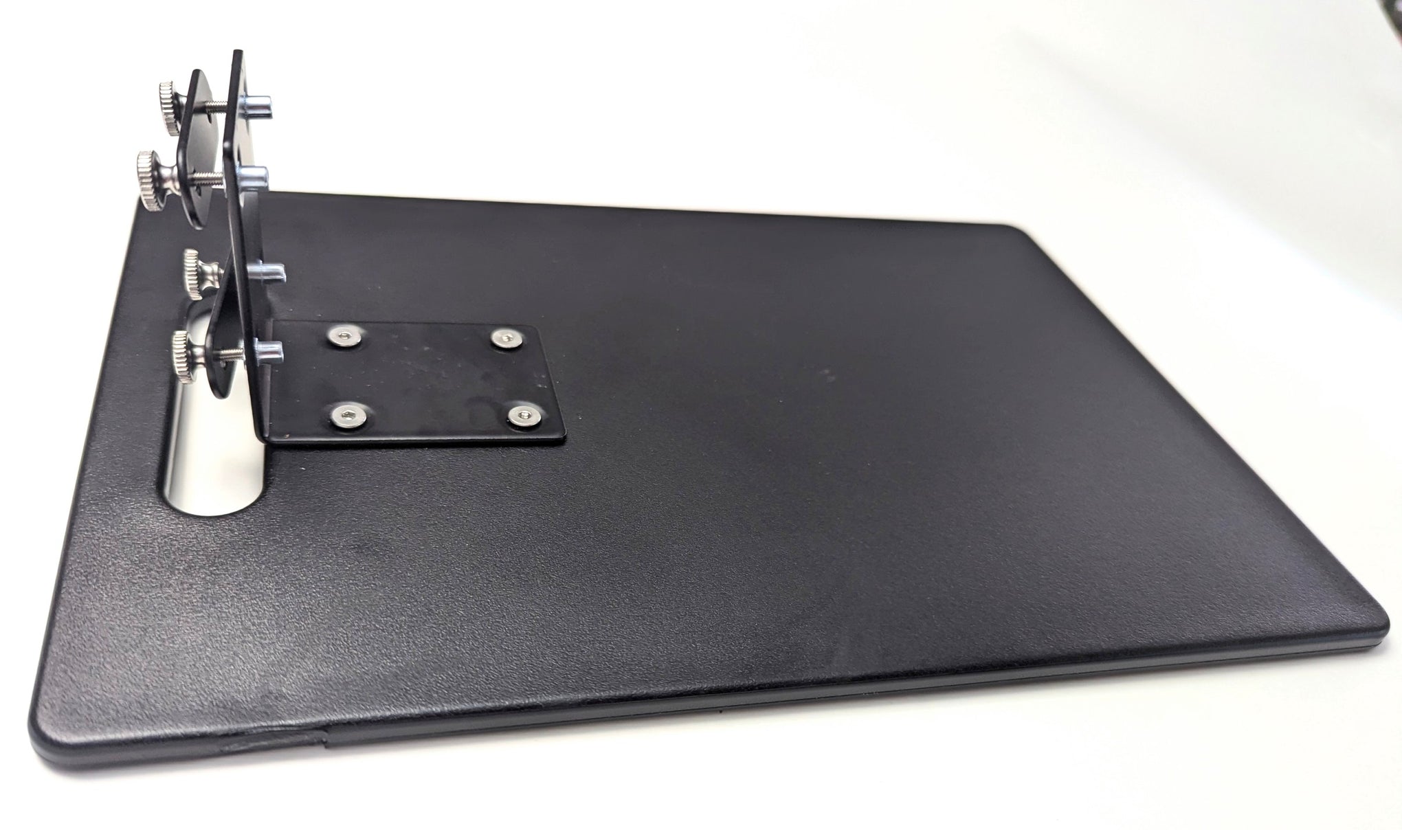 Está montado en una base de 12 "x8" x1/2 "de plástico marino negro colocado debajo del cojín de la silla de ruedas por la mañana antes de levantarse. Cuando está listo para pescar, el soporte de la barra se inserta en la base entre las piernas. Se puede ajustar más cerca o más lejos del usuario.