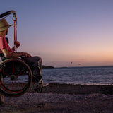 - Asiento en silla de ruedas: deslice debajo del cojín entre las piernas o a cada lado