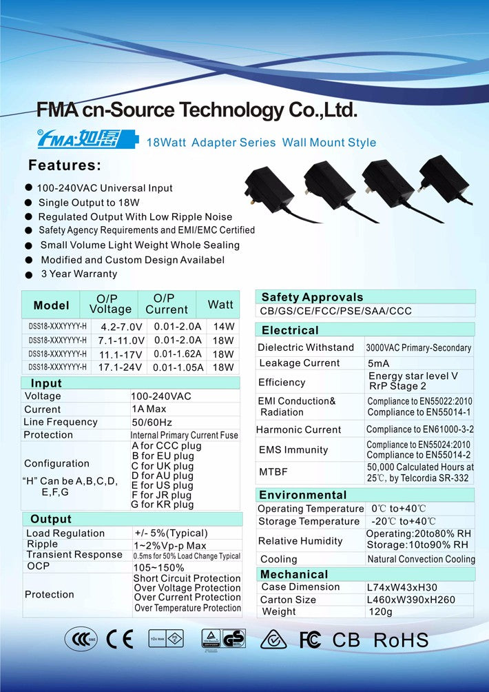 - Salida: 14.6 VDC 2A - 2.1x5.5 enchufe masculino coaxial