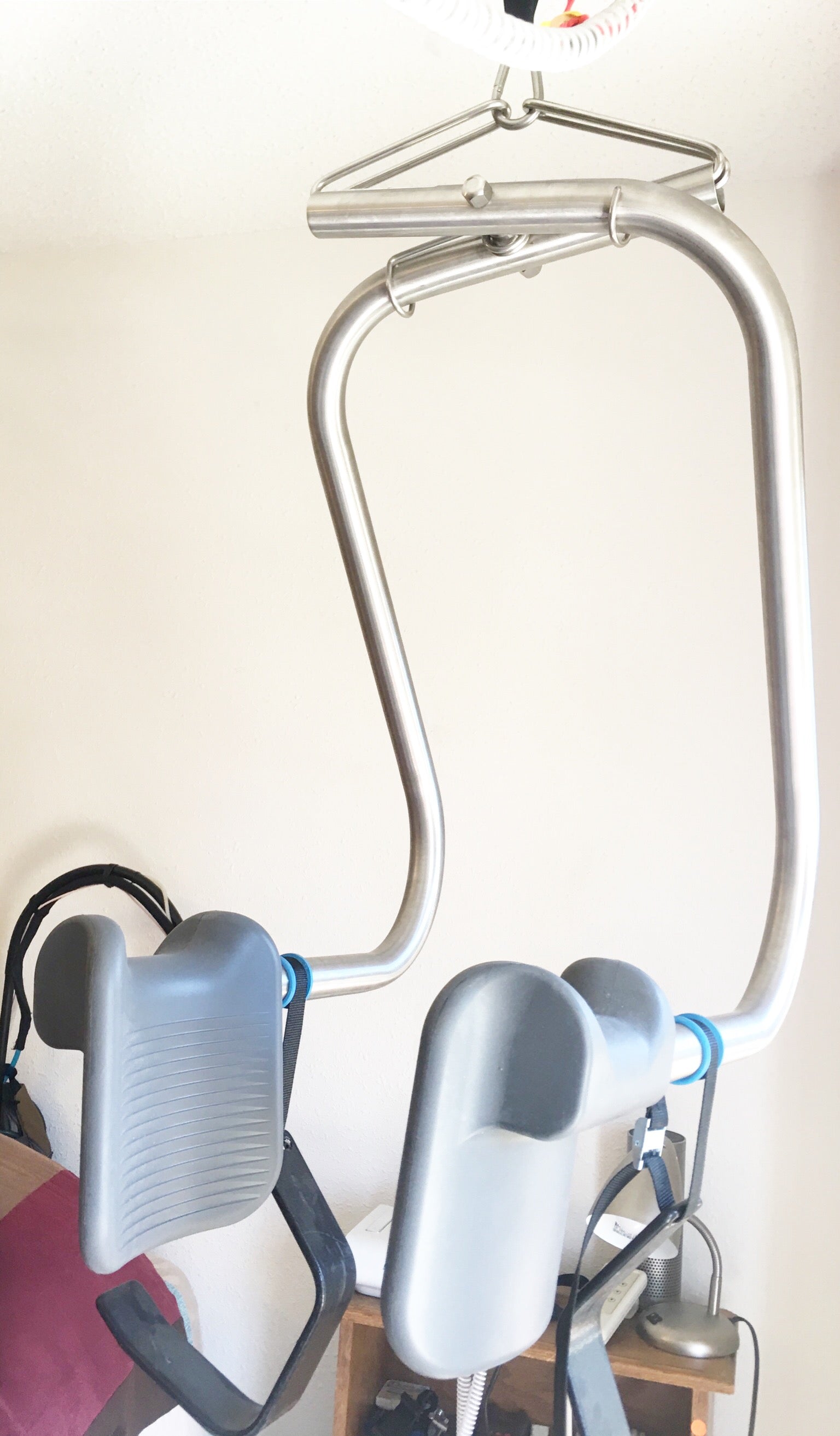 Simplicidad y accesibilidad para una aplicación conveniente para situaciones que incluyen piscinas, inodoros, duchas y otros. El levantador independiente cuando se combina con un elevador de techo de Traverse de potencia puede dar a muchas personas la capacidad de transferirse de silla de ruedas a cama o cama a silla de ruedas. Proporciona:
